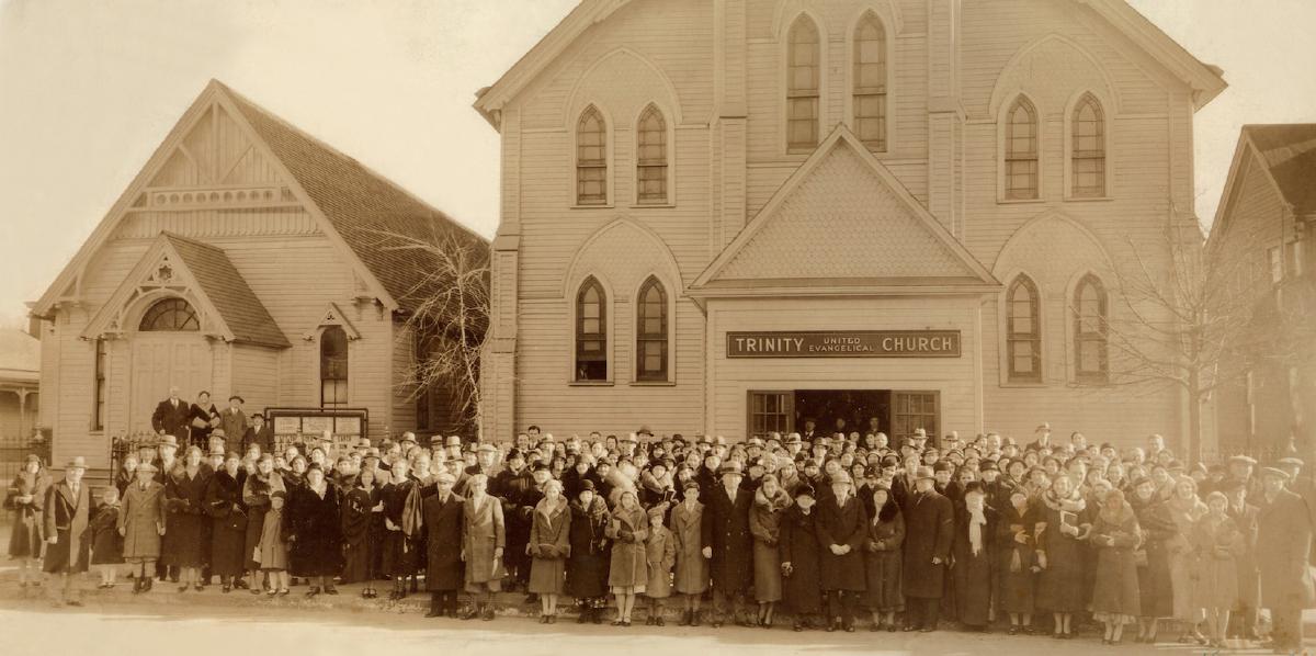 Trinity United Evangelical Church on Gold Strasse, Buffalo, 1933 [:CAR:] later Trinity United Church of Christ, and yet later merged with St Stephens-Bethlehem UCC