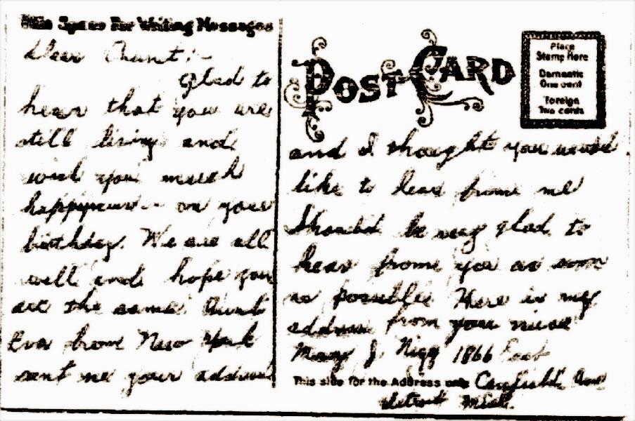 Postcard from Mary Grieser Nigg to her aunt Lena Dexheimer Harms, February 1917.