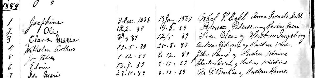 Olava Maria Olsen, Baptism 12 May 1889, Starkweather, Dakota Territory