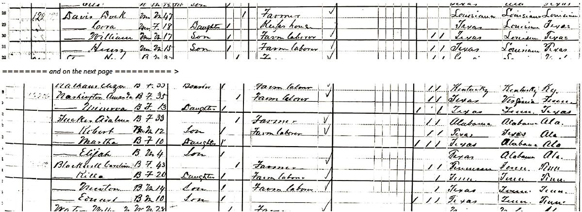 William Davis and Rilla Blackwell, 1880 census, DeWitt County, Texas