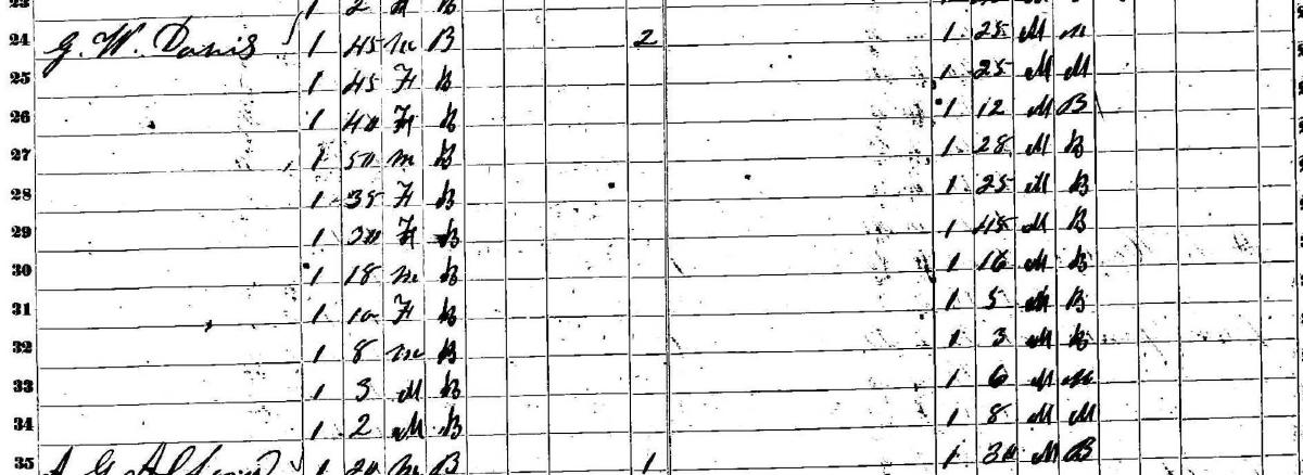 George Washington Davis, 1860 DeWitt County, Texas, Slave Schedule