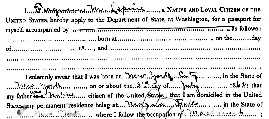 Ferguson M. Lepine, 1903 passport application.