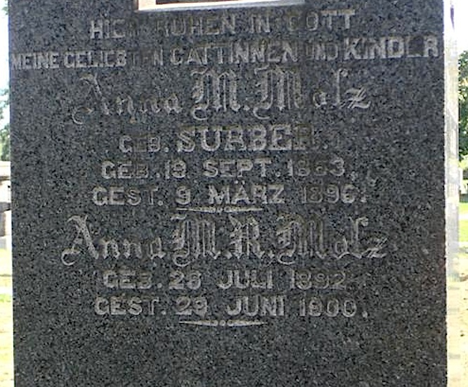 Anna Maria Surber Molz and daughter Anna Maria Molz, All Faiths Cemetery, Middle Village, New York