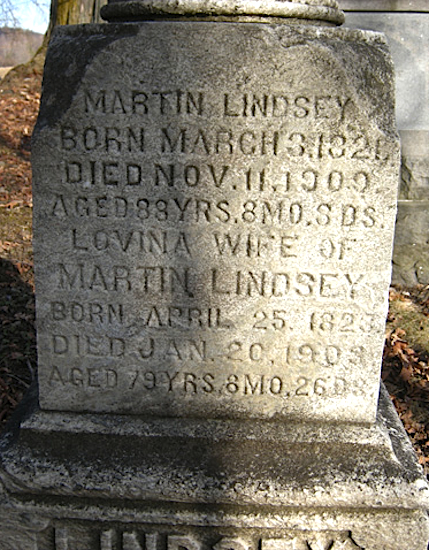 Martin V and Lovina Smith Lindsey, Maxon Cemetery, Wyoming County, New York