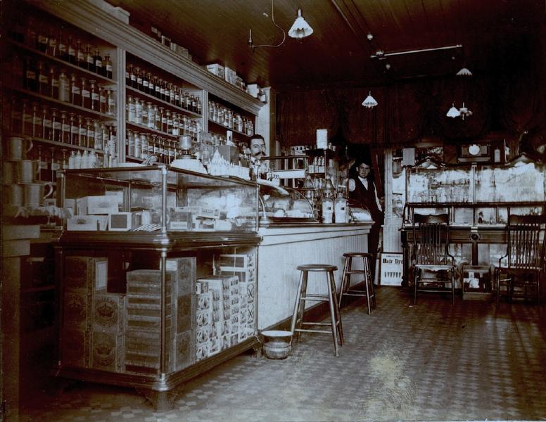 Laurier & Vorwerk drug store on Main Street in Niagara Falls, about 1896.