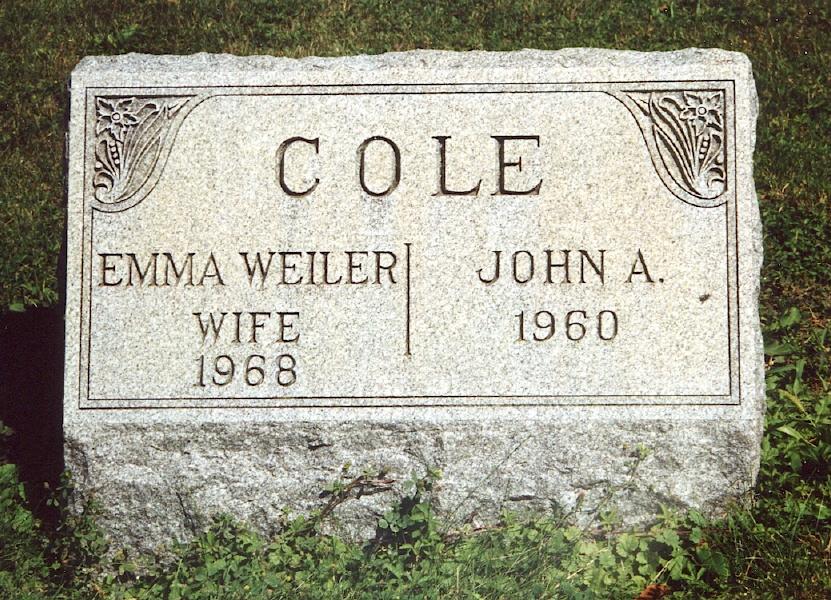 John Alexander and Emma Margaretha Weiler Cole, Oakwood Cemetery, Niagara Falls