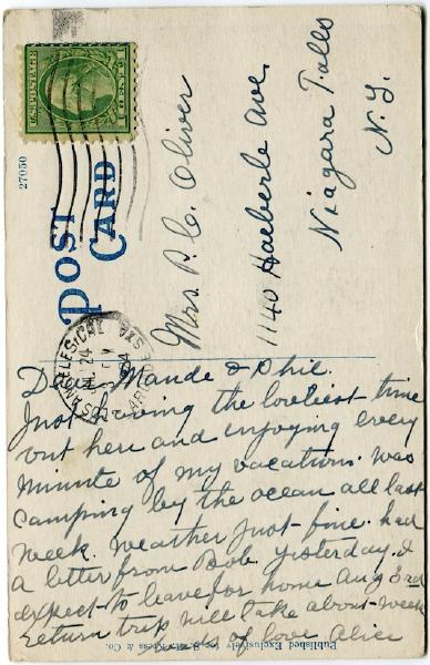 Postcard to Maude Oliver from Alice Wilson, 24 July 1924
