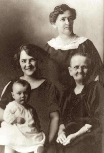 Margaret Blanche Wilson DeVine, her mother Kate DeYoung Wilson (right), daughter Edna May DeVine King, and granddaughter Betty King