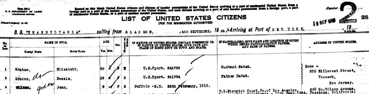 Arrived 12 September 1926 in New Yorrk from Glasgow aboard the SS