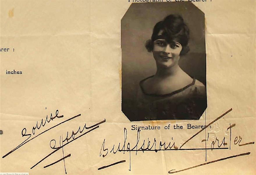 - Louise Lyson Bulgheroni Forster applied for a special one-month passport on 18 Oct 1919 at the United States Consulate at Brest, France, for the purpose of traveling to the United States as the wife of Cmdr. Otto Marquard Forster, US Navy, residing in St. Louis, Missouri, at 4933 McPherson Avenue.