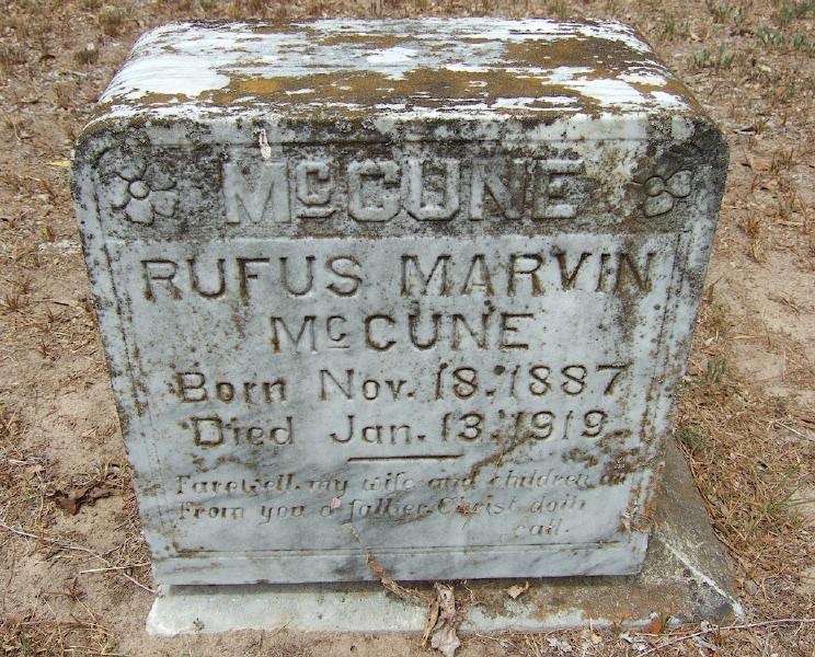 Rufus Marvin McCune (1887-1919), Fairview Cemetery, near Richards, Grimes County