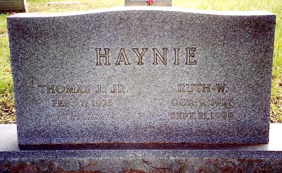 Thomas Jefferson and Ruth Elizabeth Warren Haynie, Fairview Cemetery, near Richards