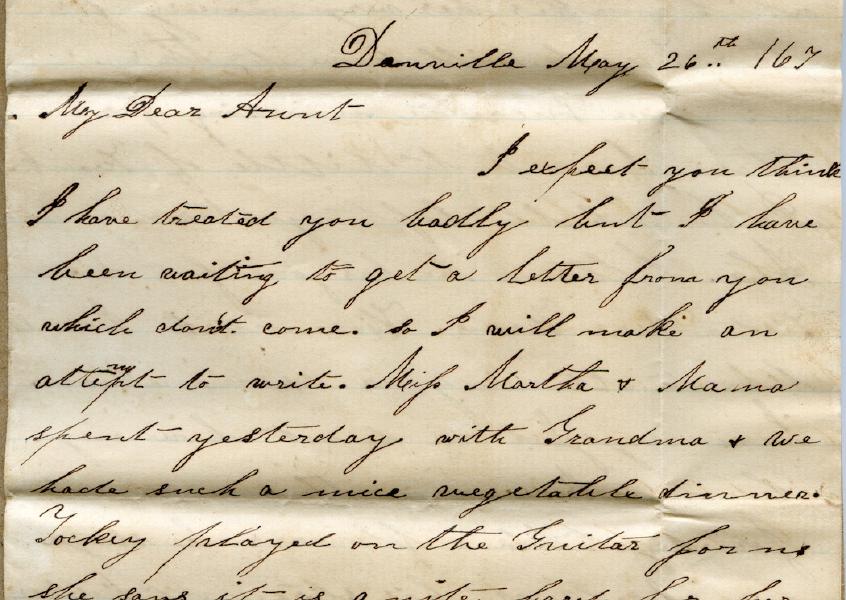 Letter from Lina Wood to her young aunt Ella Wood, 25 May 1867