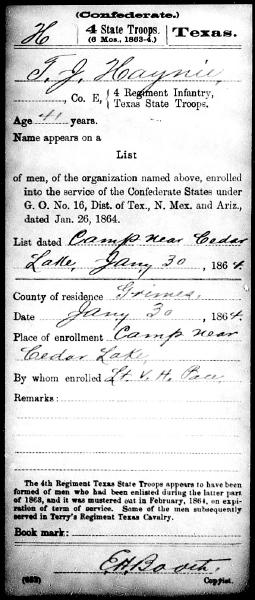 Thomas Jefferson Haynie, Company H, 4th Infantry Regiment, Texas State Troops.