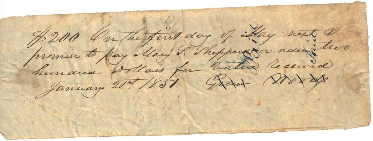 Note for $200, Green Wood to Mary Steptoe Shepperd, 21 January 1851