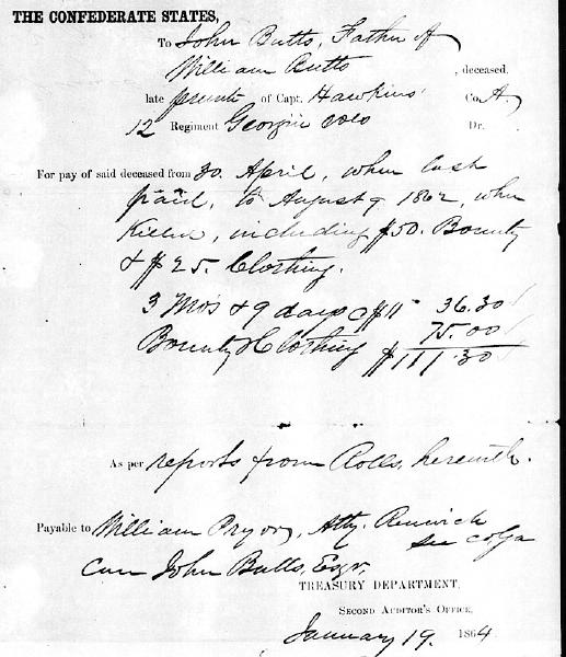 1864 payment to John Batts for amounts owing to his deceased son Wiliam.