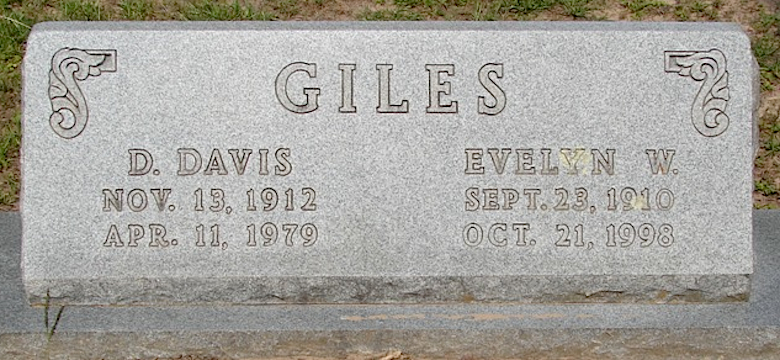 D Davis and Evelyn W Giles, Fairview Cemetery, near Richards, Grimes County
