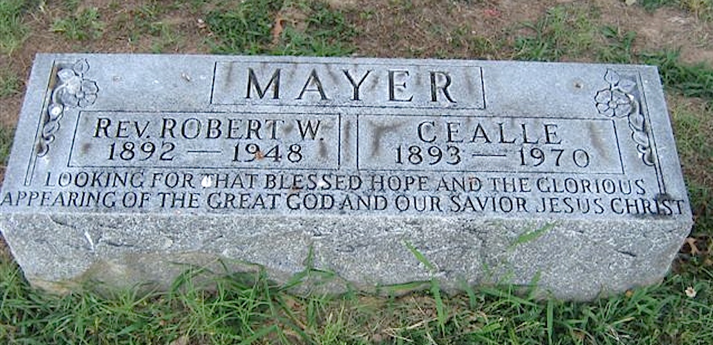Rev Robert William and Cealle May Schmermund Mayer, Maple Grove Cemetery, Boonville, Indiana