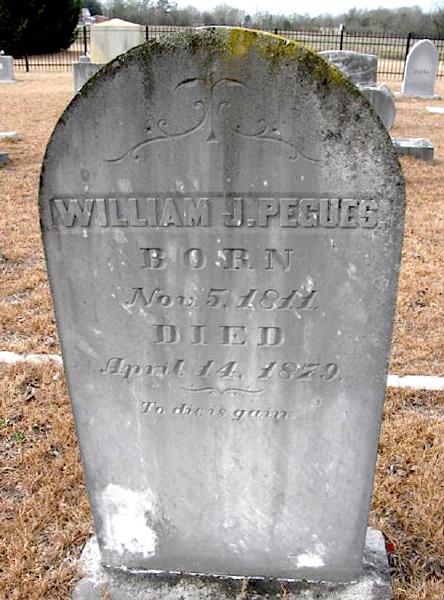William Johnson Pegues (1811-179), Pleasant Hill Cemetery, McFarlan, Anson County, North Carolina