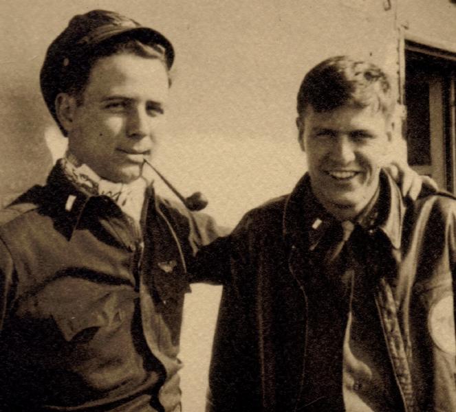 Russell Upshaw (right) and his friend Ken Kailey, in England during World War II