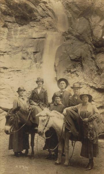 John Wesley and Cora Campbell at the foot of Seven Falls, South Cheyenne Canony, near Colorado Springs