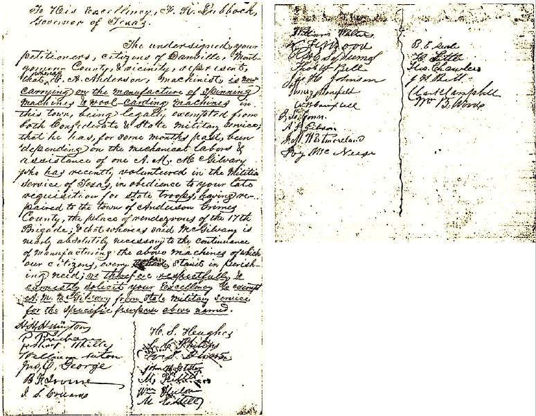 1862 petition to Gov. Lubbock for exemption from duty for E. A. Anderson