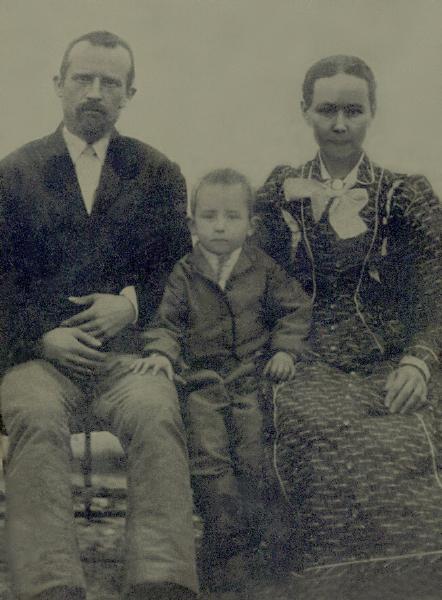 Samuel Boatright and Esther Devaney Greenhill with young Clarence Sidney, about 1877