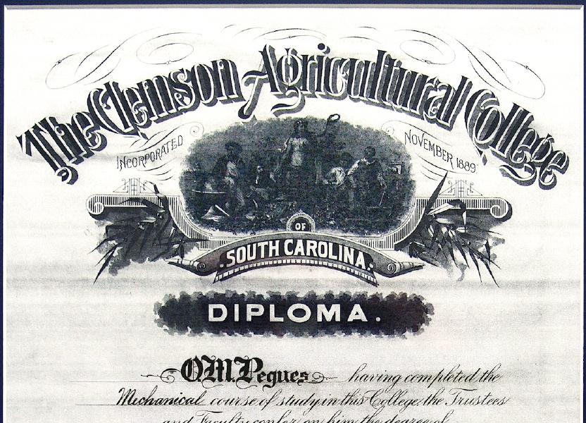 Olin Marcellus Pegues, first graduating class (1896), Clemson Agricultural College