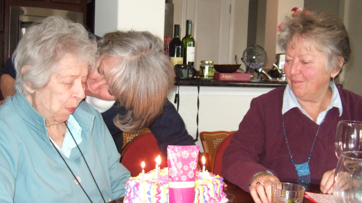 Ida Darin Ammon Belshaw's 90th birthday, with daughters Gail and Siena.