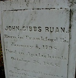 John Gibbs Ruan (1798-1868), Chestnut Cemetery, Apalachicola, Florida