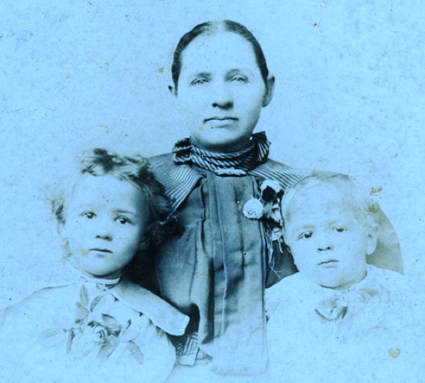Stacy Scott Teague Bay and children James Foster & Willie Agnes, about 1883.