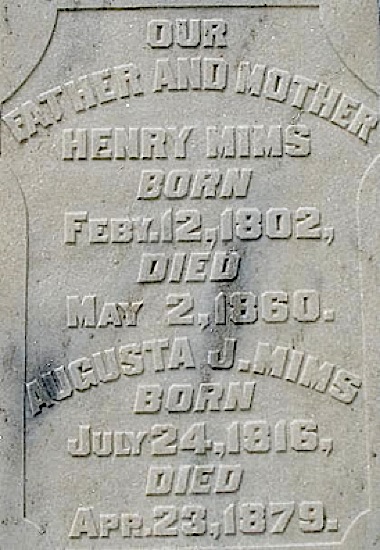 Henry (1802-1860) & Augusta Mims (1816-1879), Crystal Springs Cemetery, Copiah County