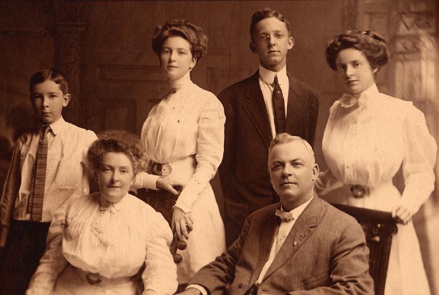 Milton LeGrand and Sallie Watkins Wood family portrait, about 1908