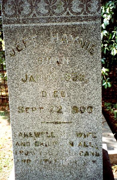 Jefferson Haynie (1859-1906), Odd Fellows Cemetery, Anderson, Grimes County
