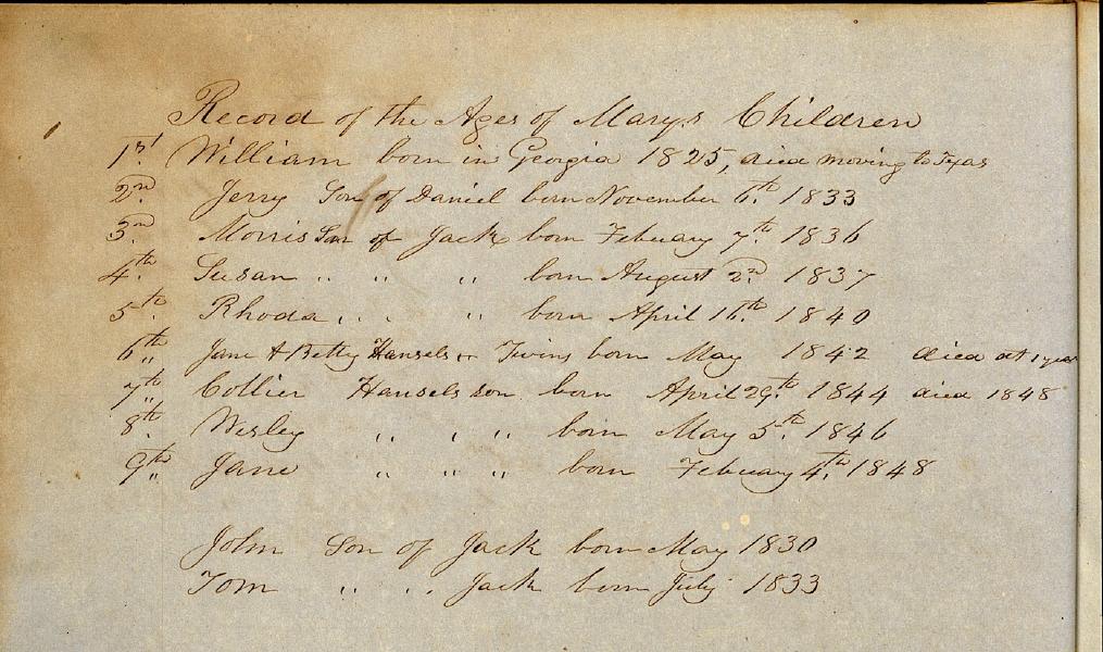 Green Wood's record of Mary's children, born 1825-1848, and also Jack's sons (1830-1833)