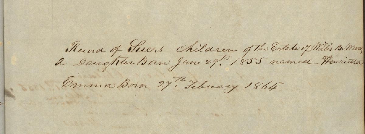 Green Wood's record of Sue's childrern, born 1855 & 1864
