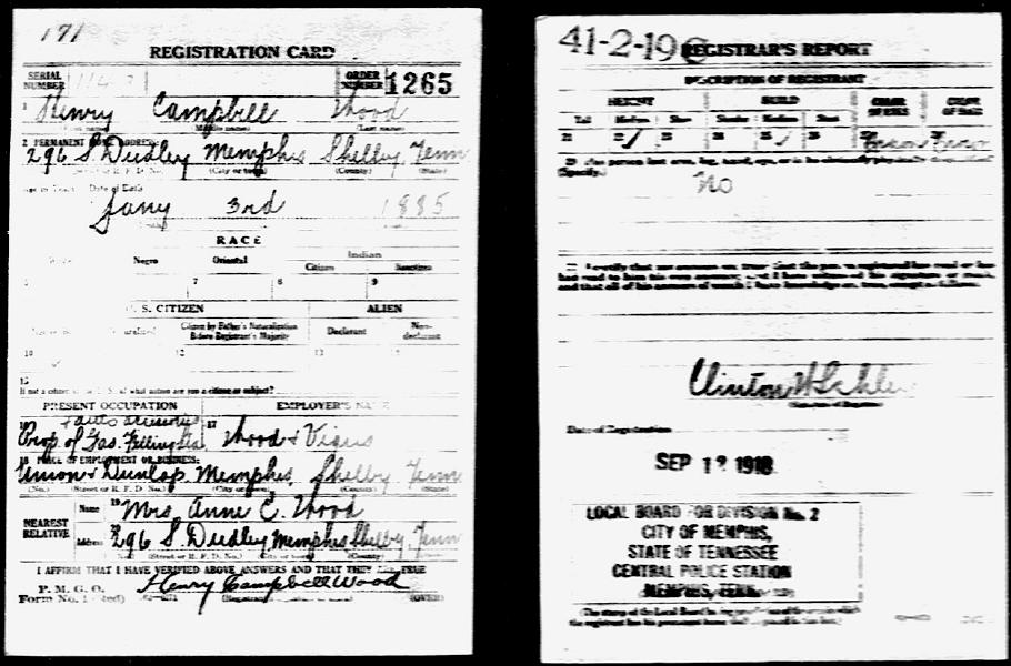 Henry Campbell Wood (1855-1951), World War I Draft Registration