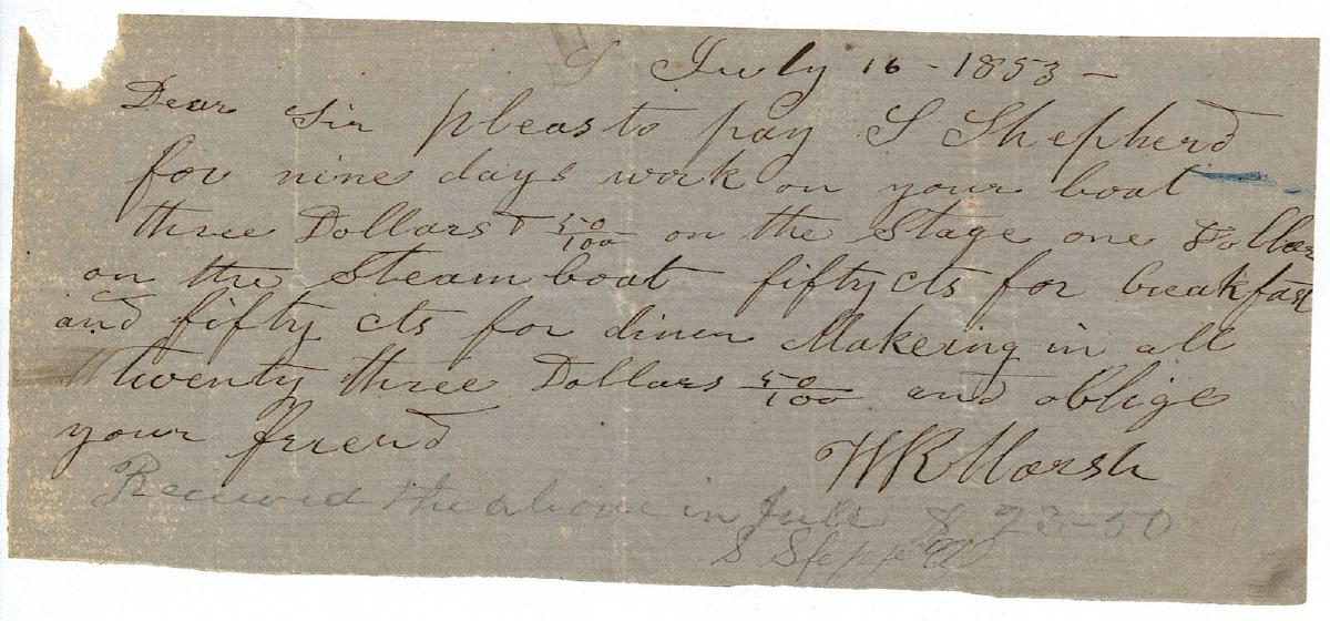 William R Marsh and Sidney A Shepperd, work on boat, 16 July 1853