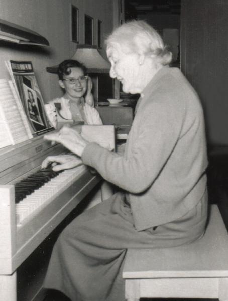 - Mary Easley plays her piano, a treat for her grand-niece Nita.