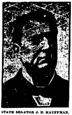 Senator Kauffman was secretary of the Galveston Commercial Association, and was a widely known figure throughout Texas. He was elected to the Texas Senate in 1910, representing Galveston, Brazoria, Chambers, Matagorda and Wharton Counties. He was prominent in fraternal and lodge circles, maintaining membership in the Masons, the Elks, the I. O. O. F., the Knights of Pythias and many other organizations. He was a Noble of El Mina Shrine and a member of the Travelers' Protective Association, in which he was executive committeeman for Texas.